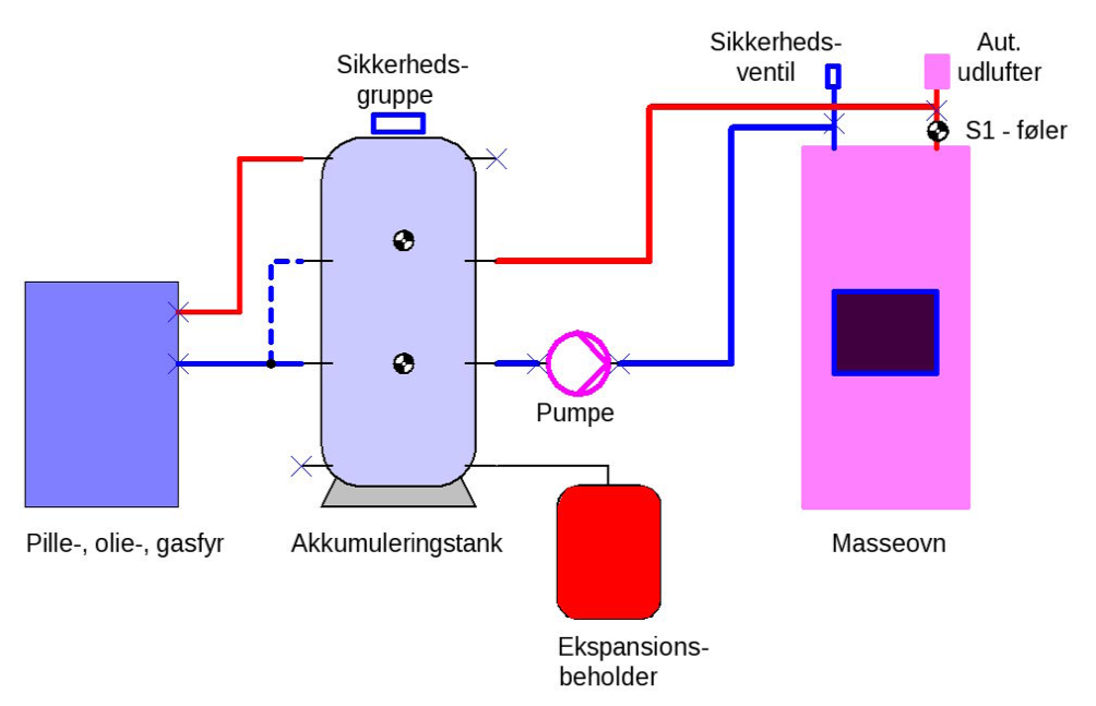 Diagram 12: Masseovn, akkumuleringstank og pille-, gas- eller oliefyr