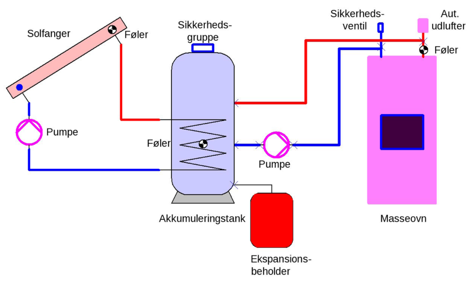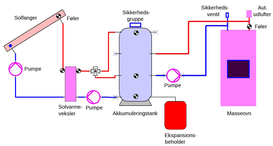 Diagram 5: Masseovn, akkumuleringstank og solfangere med ekstern varmeveksler