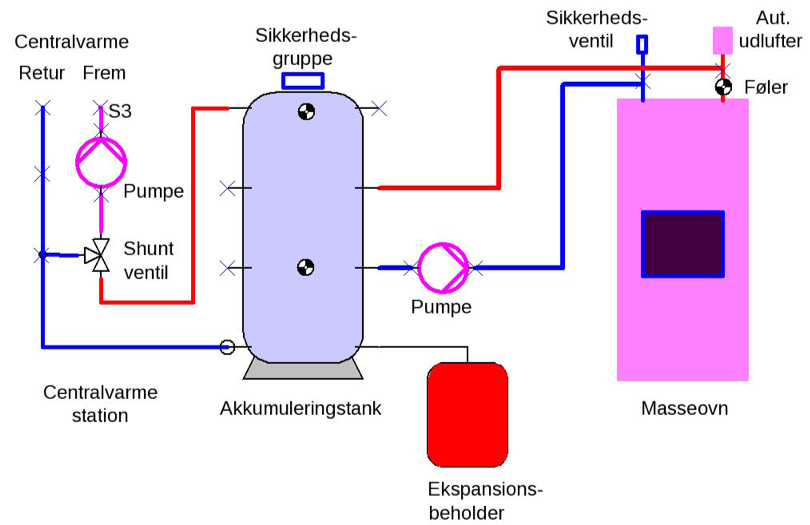 - Diagram 3: Masseovn og akkumuleringstank (buffertank)