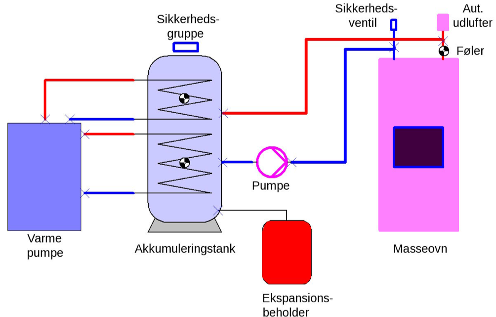 Diagram 8: Masseovn, akkumuleringstank og varmepumpe